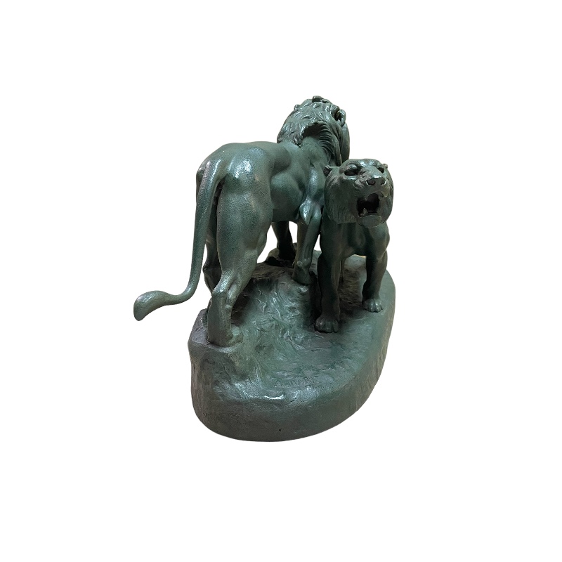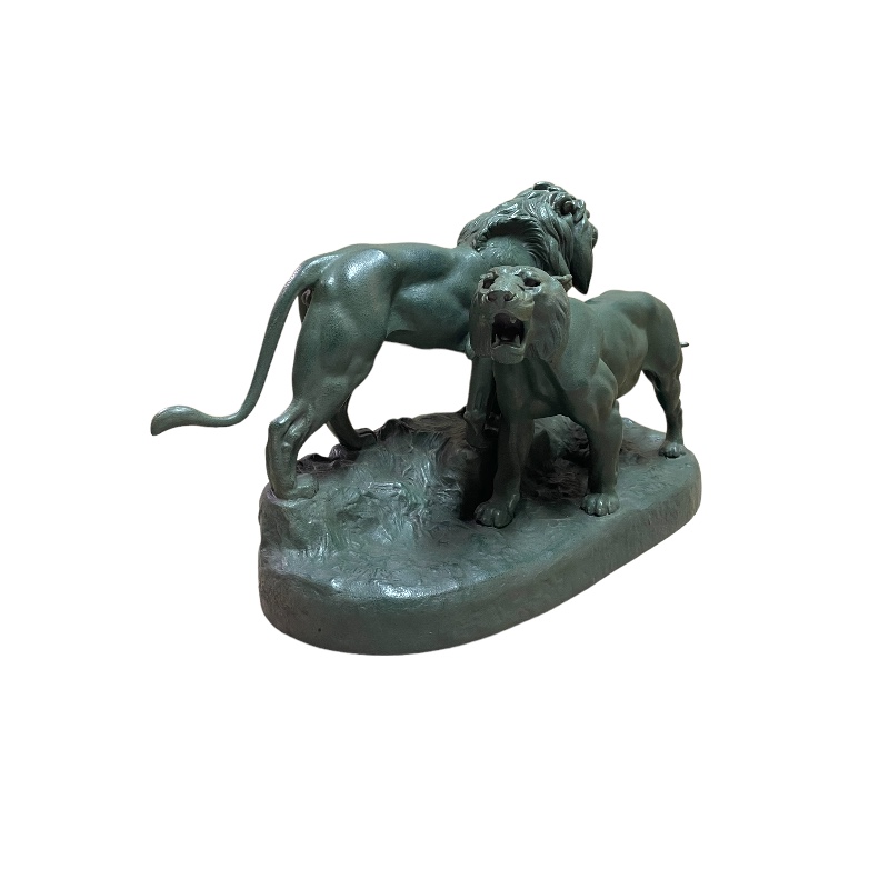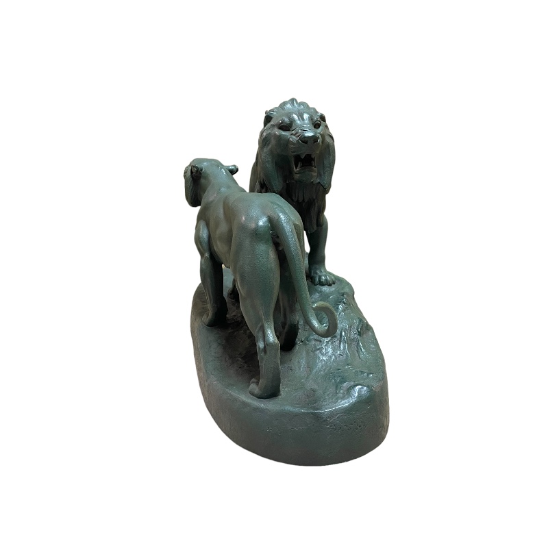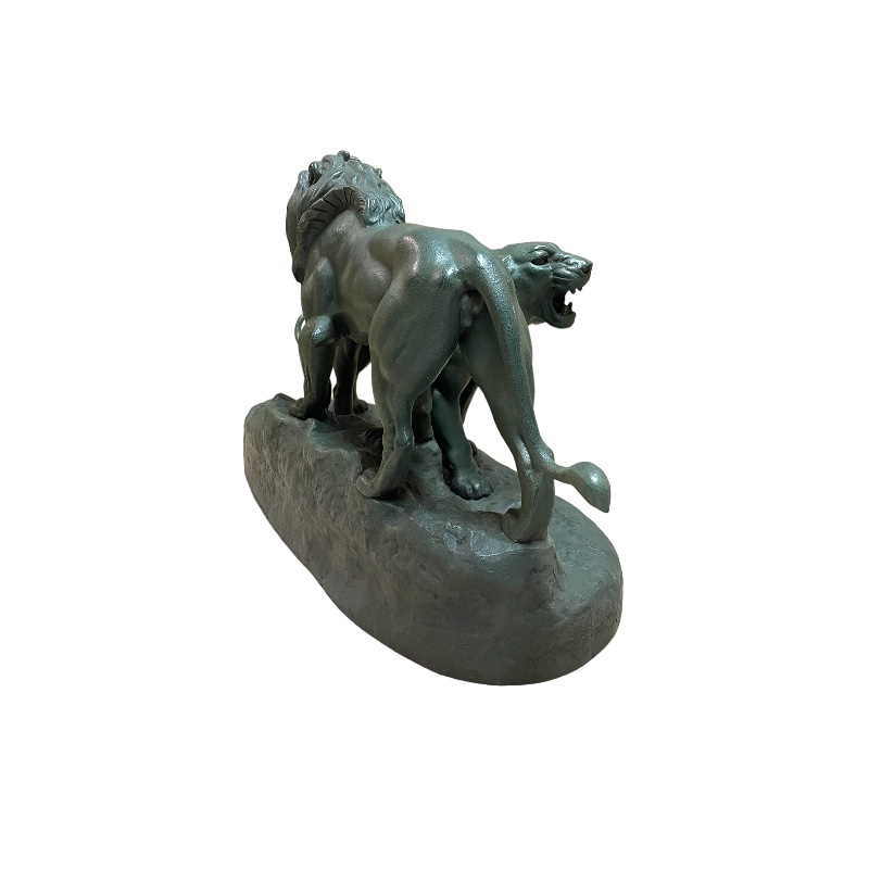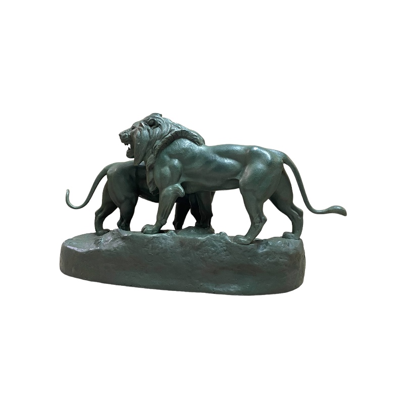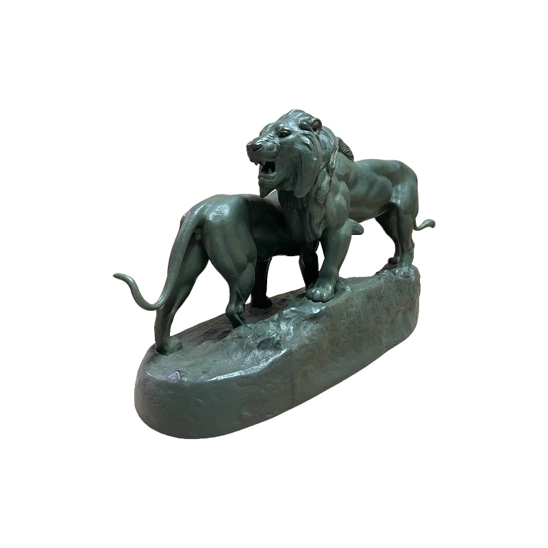 Conjunto animalista representando una pareja de leones firmado A. Barye. Francia periodo Art Deco.