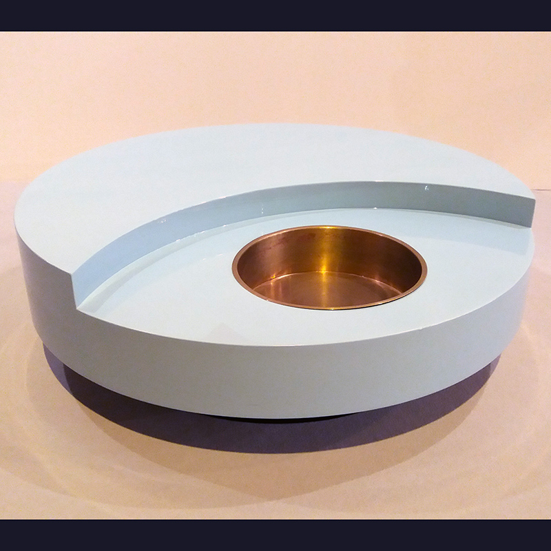 Excepcional mesa de centro rotatoria de Willy Rizzo , en laca celeste con la champañera en laton dorado. Francia. Años 70.