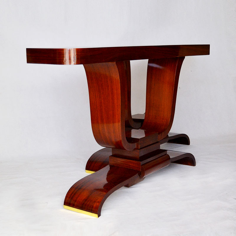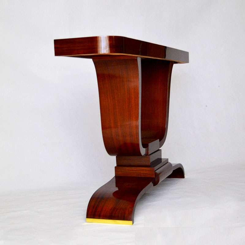 Pareja de consolas Art Deco con pie de lira en palisandro. Francia.Años 30.