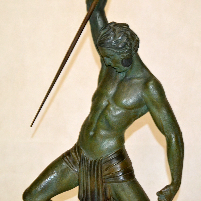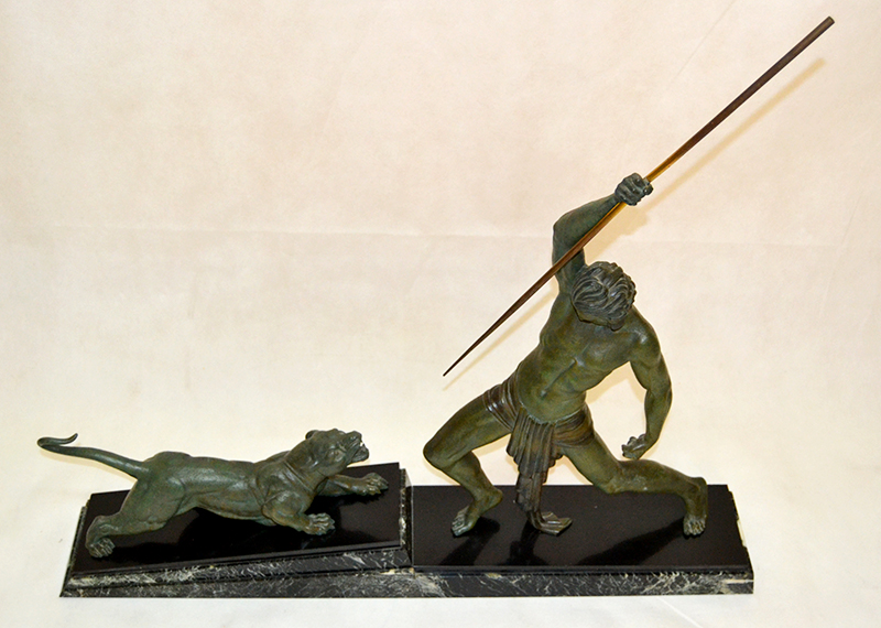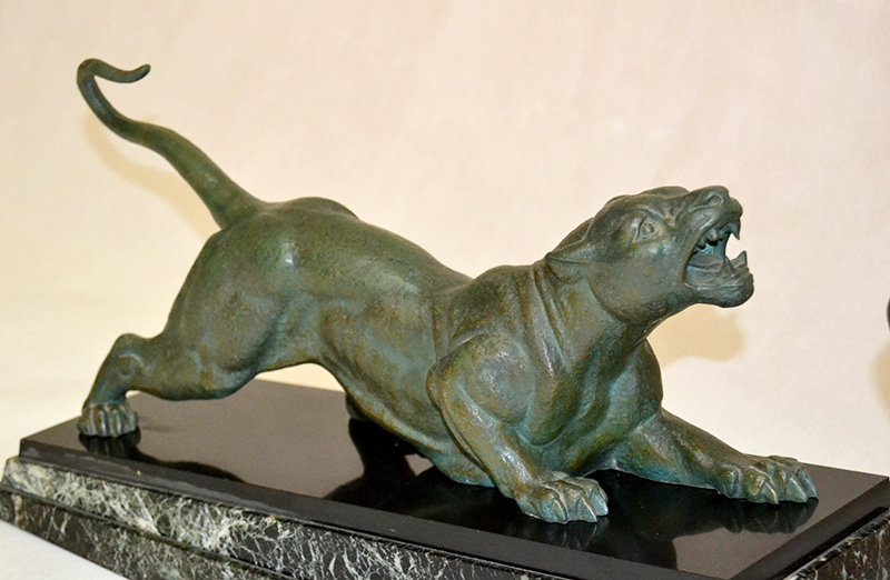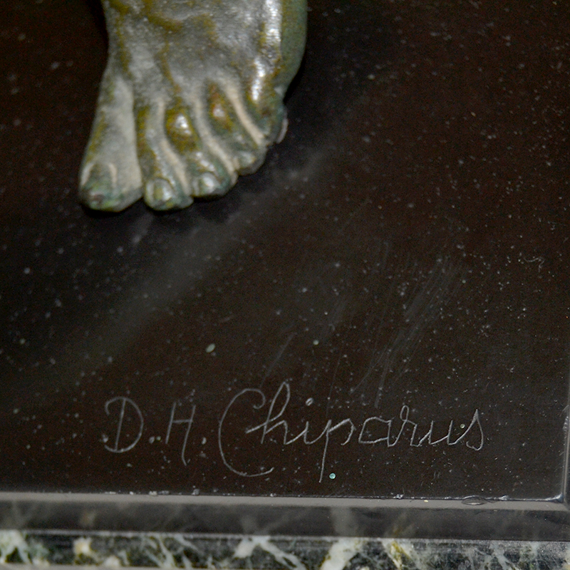 Importante conjunto escultórico del escultor Demetre H. Chiparus periodo animalista. Pátina bronce óxido sobre base de de diversos tipos de mármol, verde egipto y negro belga. Años 30.