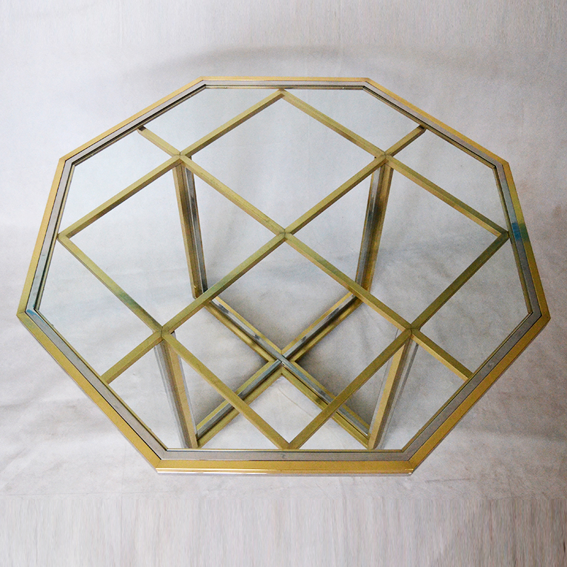 Mesa en acero y latón con tapa de vidrio. Romeo Rega. Italia. S.XX. Años 70.