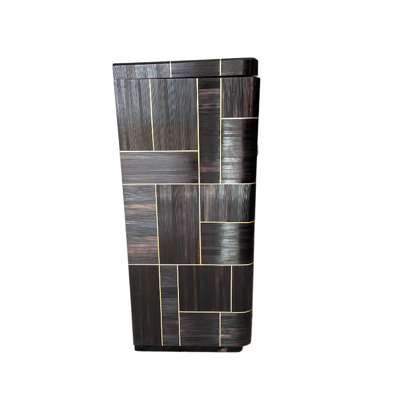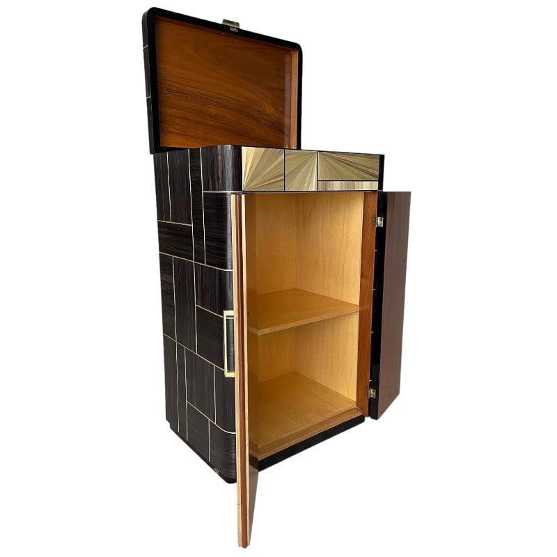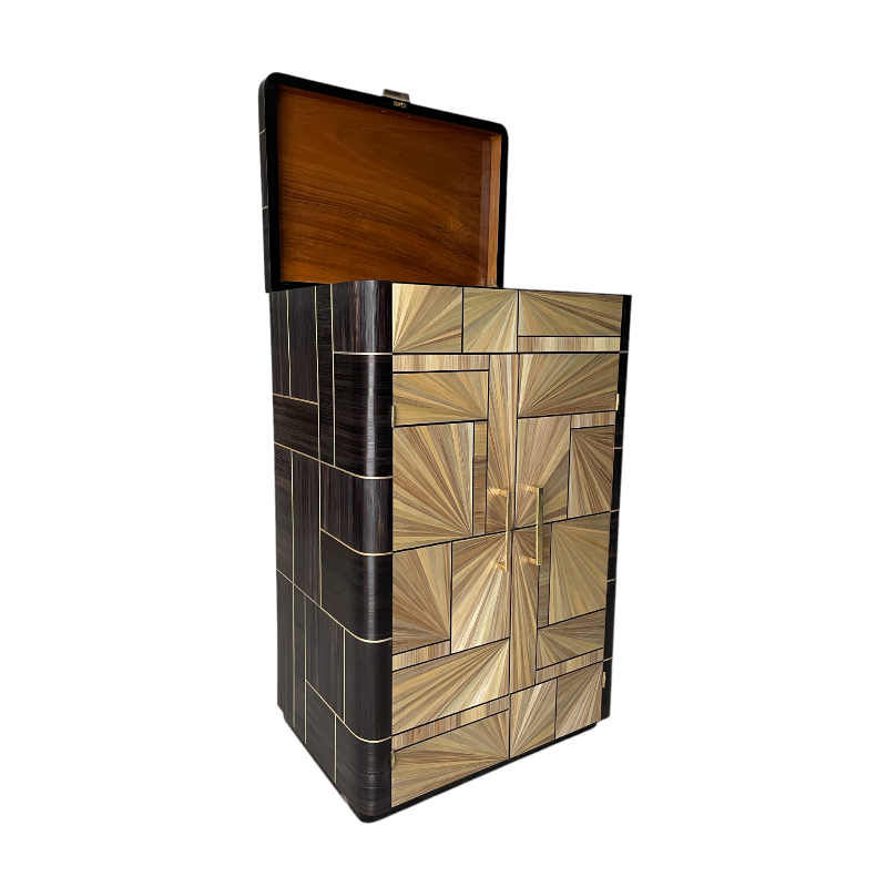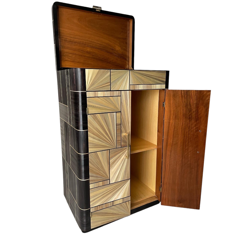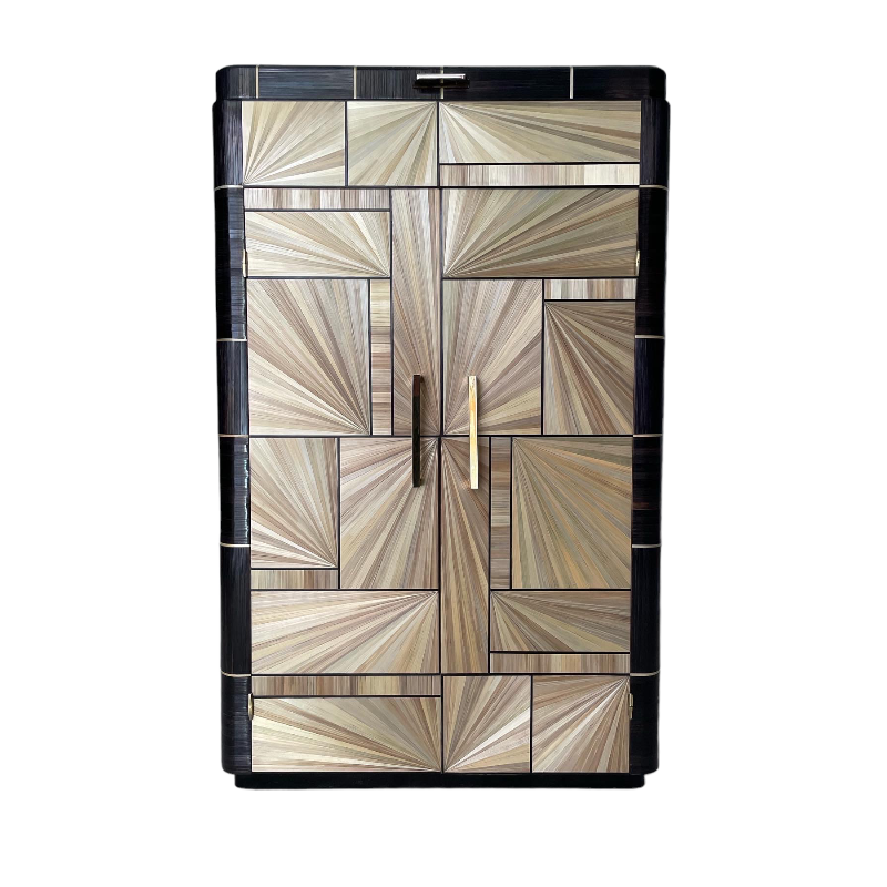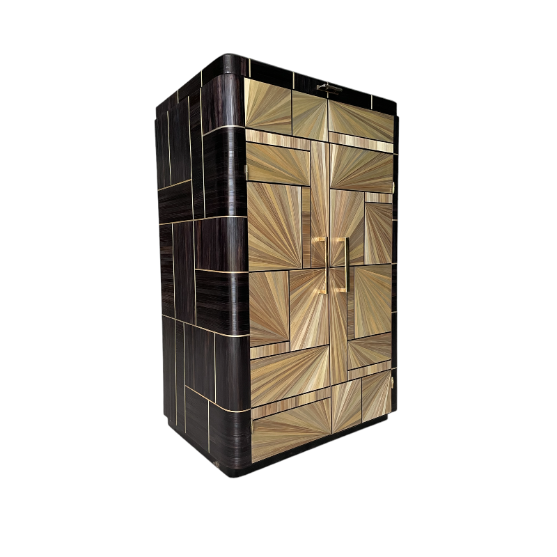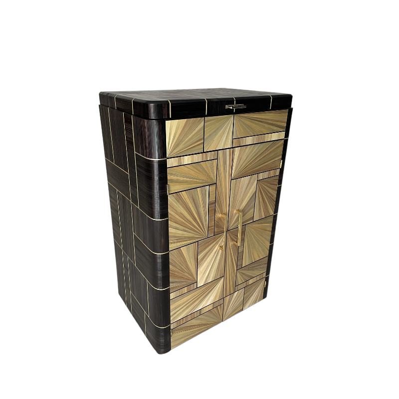 Mueble bar Art Deco en marquetería de paja hecha por Atelier D’art JC pieza única.