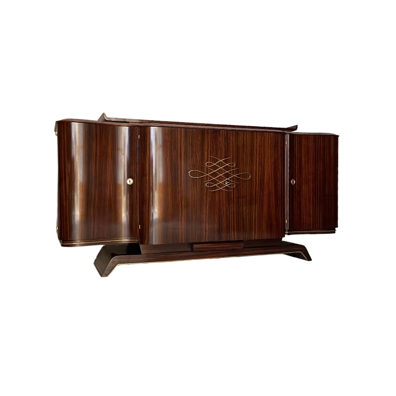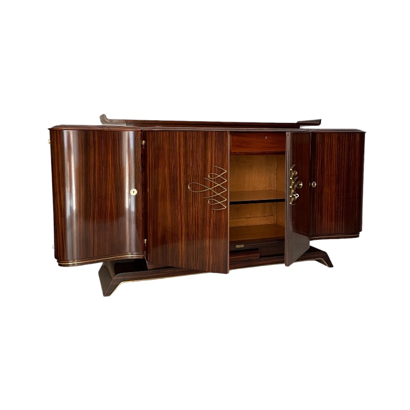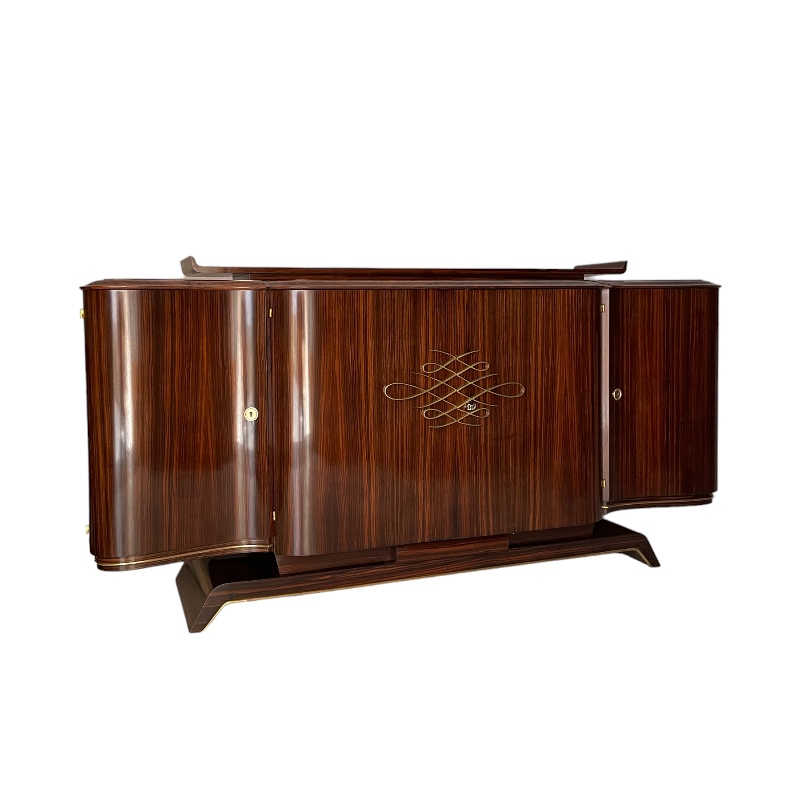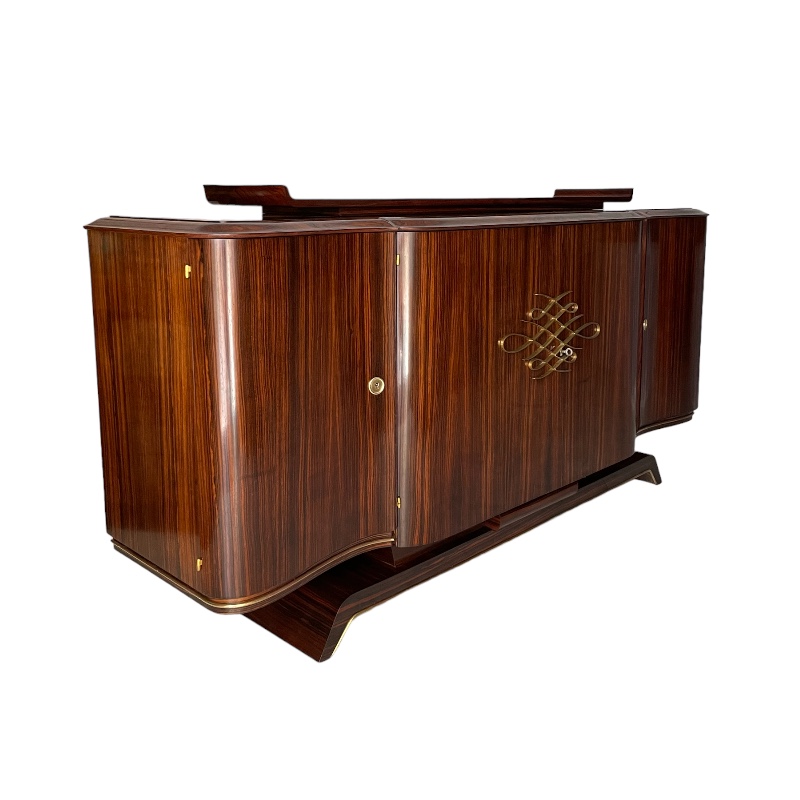 Gran buffet en ébano de macassar y palisandro de río decorado con baguettes de bronce dorado. Atribuido a Dominique. Francia, años 30’.