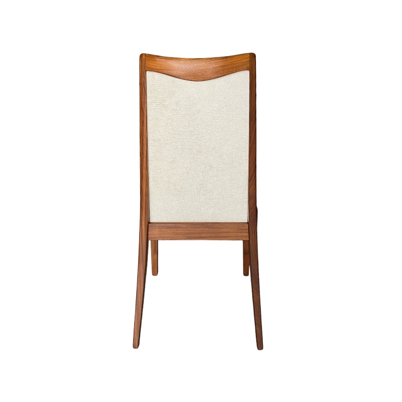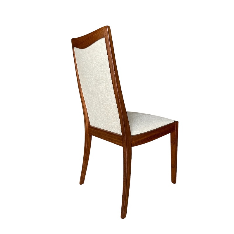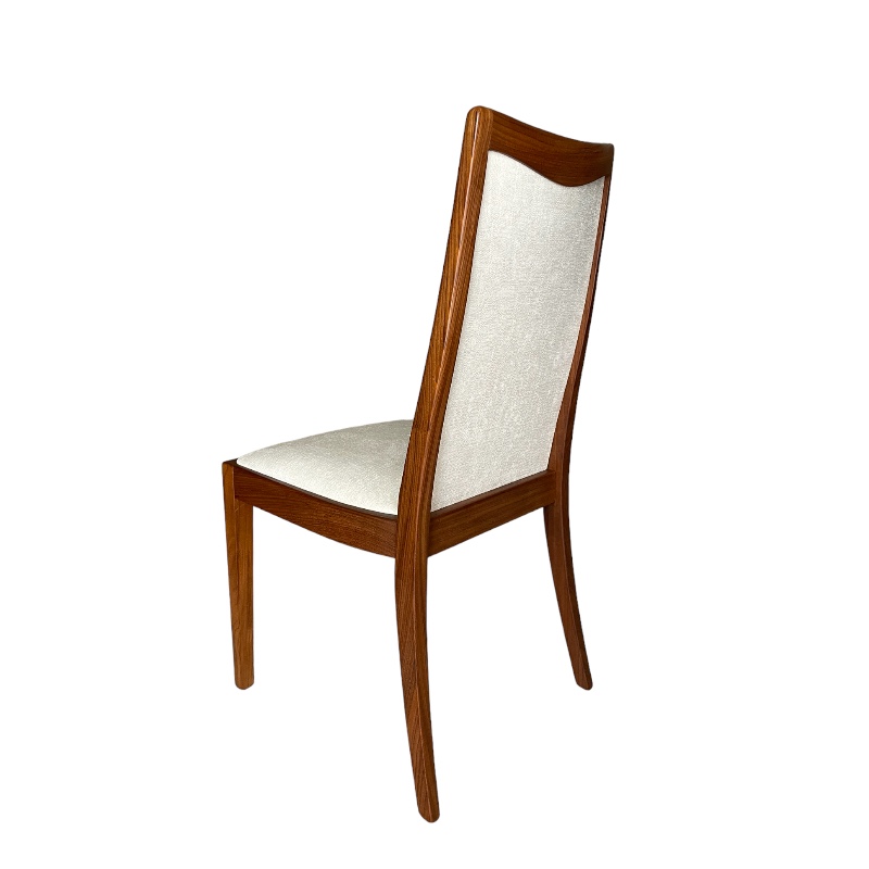 Conjunto de cuatro sillas y dos sillones nórdicos en madera de teca, restaurados y retapizados. años 60.