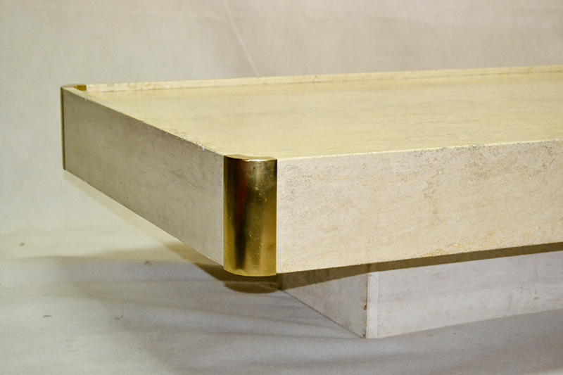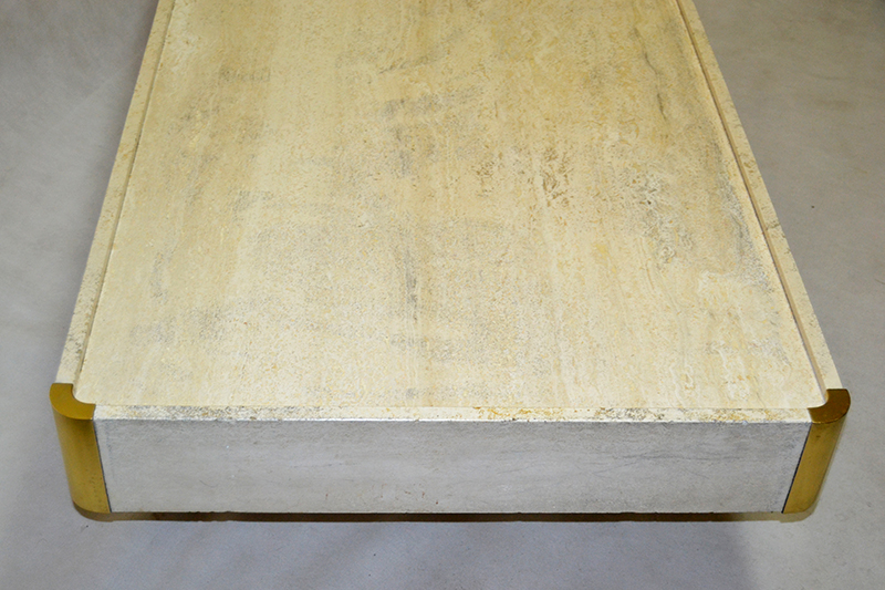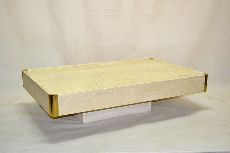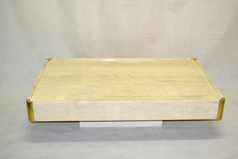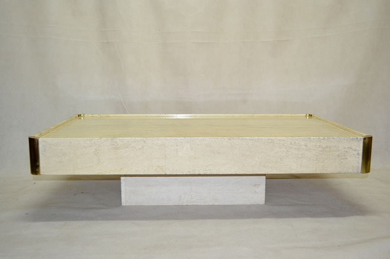 Gran mesa de centro en marmol travertino y laton.Mario Sabot Italia, años 70.