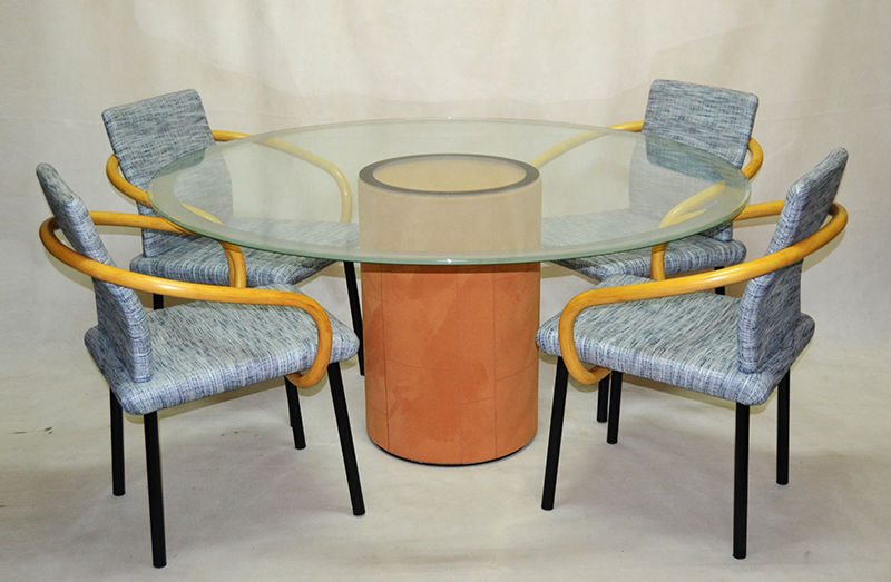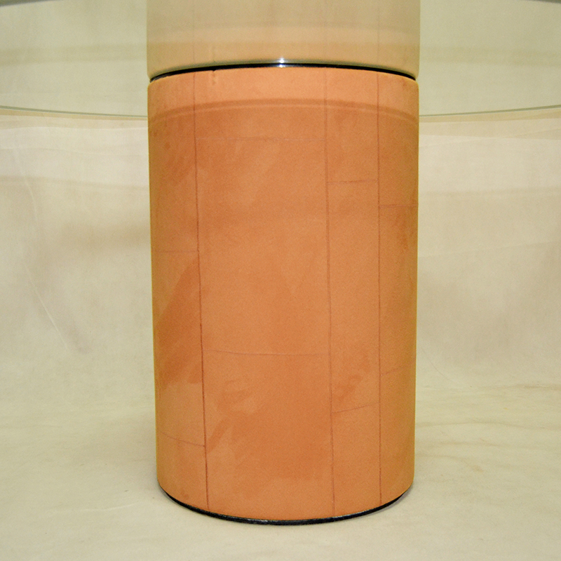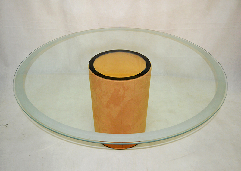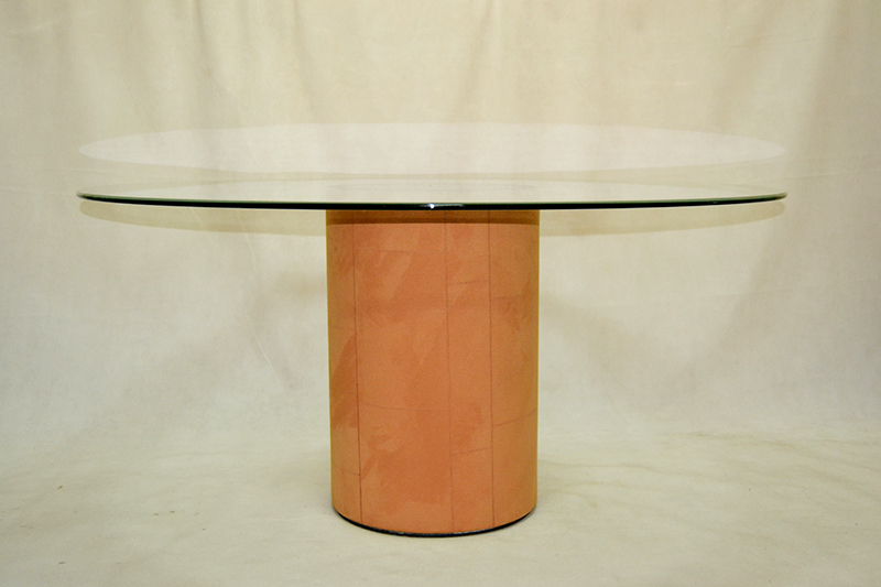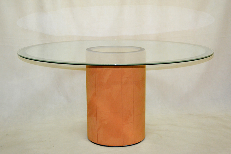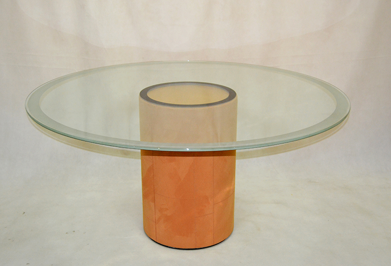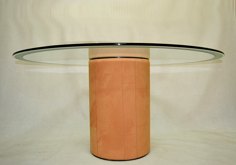 Gran mesa de comedor de Afra & Tobia Scarpa en piel y vidrio templado parcialmente grabado al acido. Italia, años 60/70.