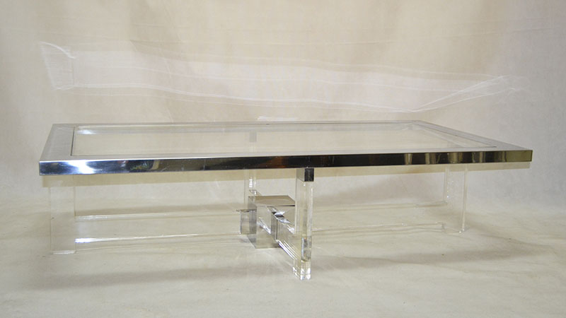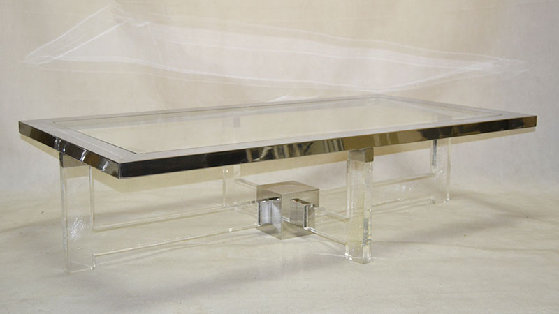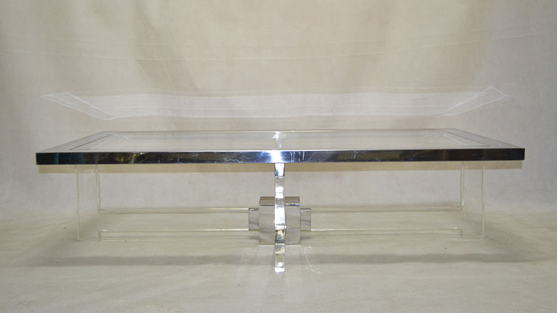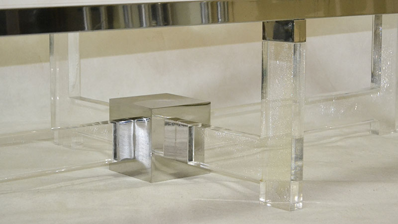 Gran mesa de centro en acero, metacrilato y vidrio. Italia. Años 70/80.