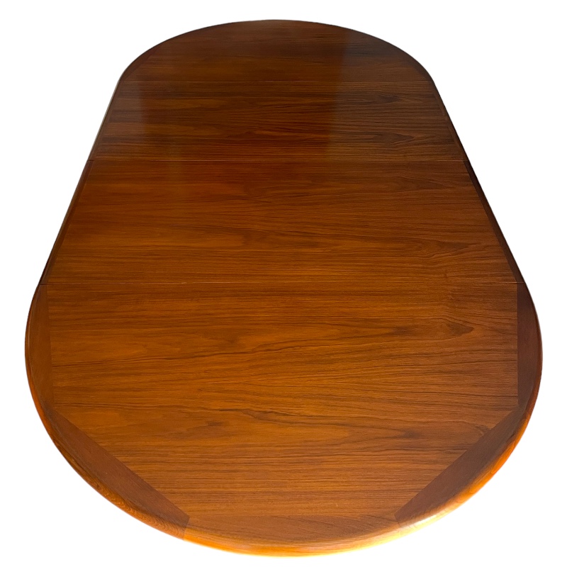 Mesa redonda extensible en madera de teca. Dinamarca, años 60’.