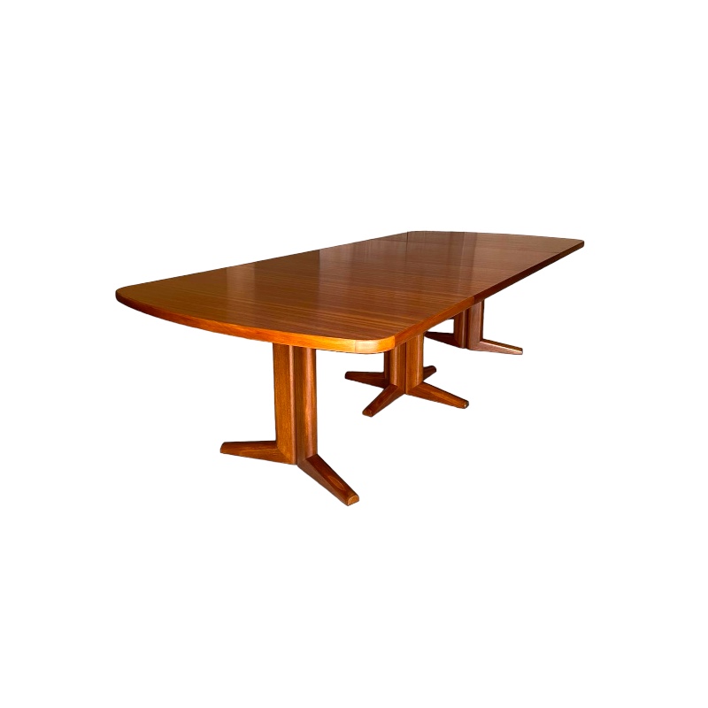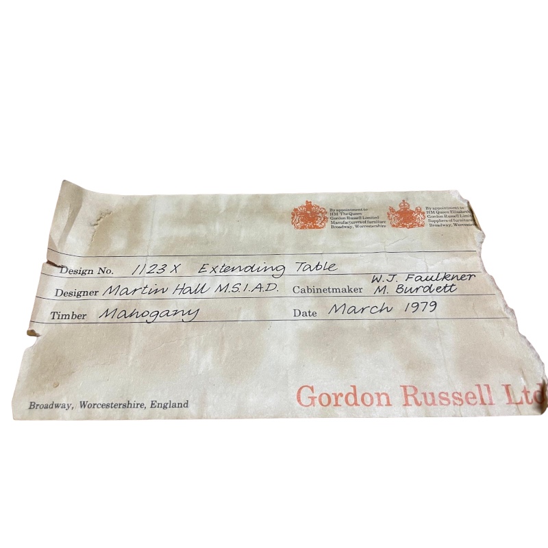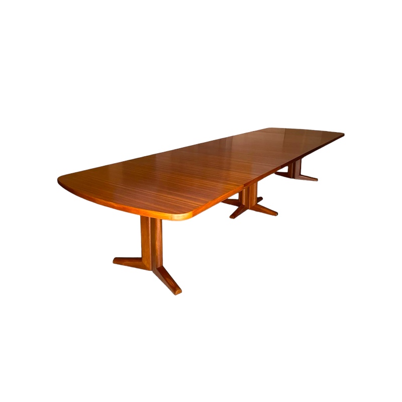 Gran mesa de comedor en madera de caoba rubia diseñada por Martin Hall y editada por Gordon Russell LTD. conserva la etiqueta. Reino Unido , años 70