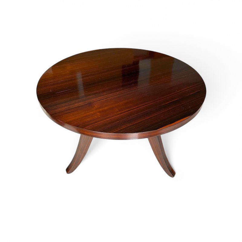 Gran velador Art Deco en ebano de macasar con tres patas del estilo de Rulhmann. Francia años 20/30’.